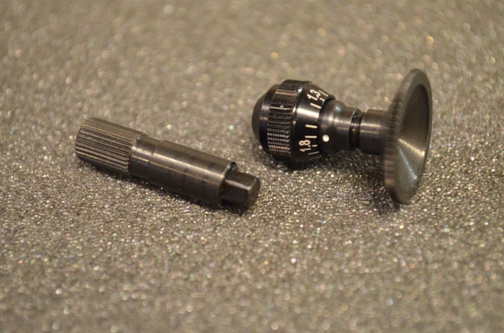Verstelbaar irisdiafragma voor in het achtervizier van een SIG P90/550/551