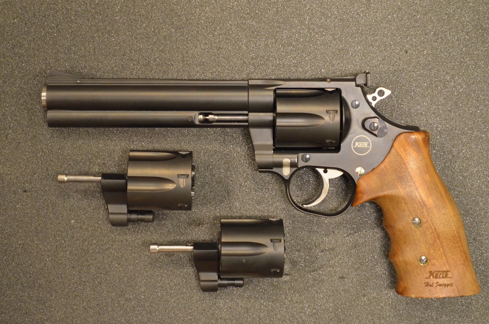 Kaliber: .357M. met wisselcilinders .38sp. en 9x19